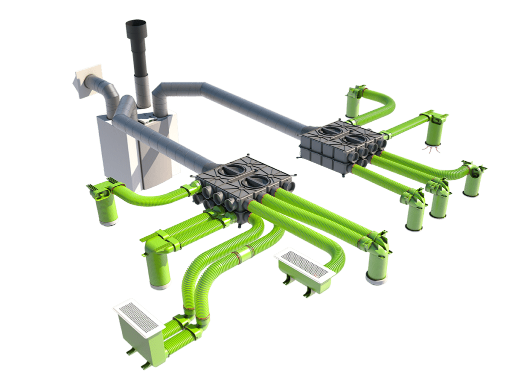 Pri inštalácií je dôležité správne nastavenie ventilačného systému. Počas nastavovania sa množstvo privádzaného vzduchu nastaví na vypočítanú hodnotu, čo zaisťuje, že v každej miestnosti je dodávané a odvádzané správne množstvo vzduchu. Vďaka regulovateľnému potrubnému systému Air Excellent je nastavenie jednoduchšie a rýchlejšie a hlučnosť inštalácie je minimálna.