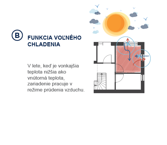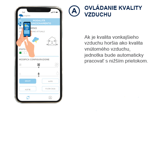 1.Automatický režim: prevádzka s rekuperáciou tepla. Jednotka je riadená senzorom.